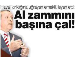 ASGARİ ücretin bile 577 lira olduğu ortamda yılın ilk 6 ayı için emekli maaşlarına 63-101 lira artış sağlayan bu açıklama, emekliyi adeta çıldırttı. Birleşik Emekliler Derneği Genel Başkanı Yücel Coşkun, “Başbakan Erdoğan bu zammı alsın da başına çalsın. Çok kötü bir sürpriz ve hayal kırıklığı. Ya ben Türkiye’de yaşamıyorum ya da Başbakan. Sandıkta hesabını soracağız” dedi.
