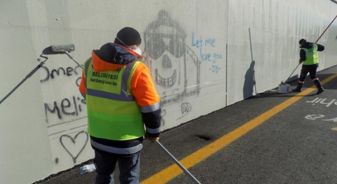 Başkent’te çeşitli yerlere boyalarla yazılan duvar yazılarını temizlemenin büyük emek ve zaman kaybına neden olduğuna dikkat çeken Büyükşehir Belediyesi yetkilileri, yazıları yok etmek için kamu bütçesinden harcama yapıldığını hatırlatarak, kirletenleri duyarlı olmaya çağırdı.