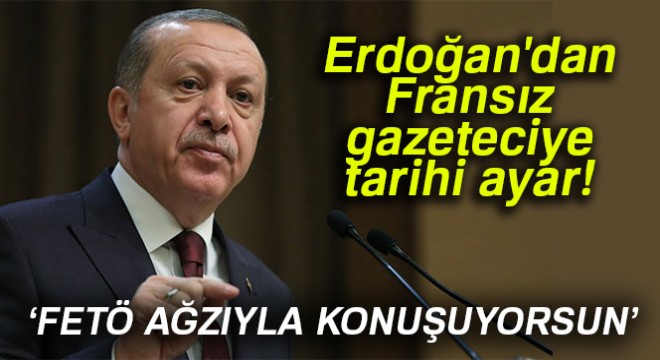 Erdoğan, gazeteciye “Bu soruyu FETÖ ağzıyla soruyorsun” diyerek ABD’nin Suriye getirdiği 4 bin tırı neden sormadığını hatırlattı.
