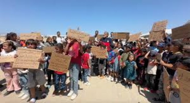 Etkinlikte 11 yaşındaki Rama Ebu’l-Ayneyn, "Sınır kapılarının açılmasını istiyoruz. Açlıktan ve bombalardan ölüyoruz. Yardımların girmesi için sınır kapıları açılsın." diyerek, açlık ve ölümle karşı karşıya olduklarını ifade etti. Rama, ölenlerin çoğunun çocuk olduğunu belirterek, "Artık yeter. İki aydır açlıktan ölüyoruz, ne güvenlik kaldı ne de eğitim." dedi.