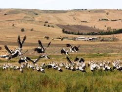 ANKARA GAZETESİ / Güneye göç etmeye başlayan leylek sürüsünün, Eskişehir Yolu 23’üncü kilometresinde verdiği mola, Ankara Hürriyet muhabirinin objektifine yansıdı.