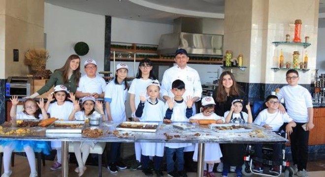 12 engelli çocuk, otelin şefleriyle birlikte kurabiye yaptı. Minik şefler, etkinlikte keyifli vakit geçirdi.