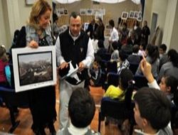 Dünyaca ünlü hava fotoğrafçısı ve hava kameramanı Soner Çapoğlu, minik öğrencilere fotoğraflarını sergiledi.