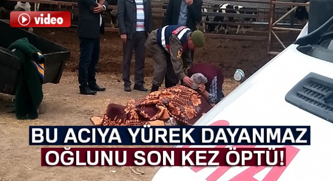 Aksaray’da yem karma makinesinin kapağının altında kalarak ölen 18 yaşındaki gencin babası, oğlunun üzerine örtülen battaniyeyi kaldırarak son kez sarılıp öptü.