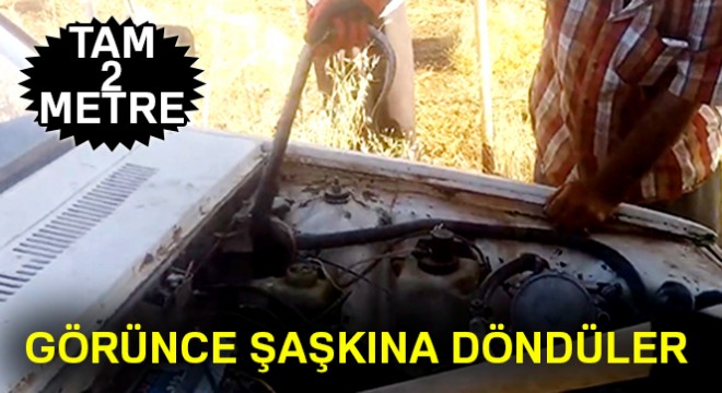 Olay, öğleden sonra Hilvan'a bağlı İncirli Mahallesi'nde meydana geldi. Mercimek ekili tarlada çalıştığı sırada park ettiği otomobiline giren yılanı gören Mahmut Ogur, çevredekilere haber verdi. Otomobilin motor kısmına giren yılanı çıkarmak için uzun süre uğraşan Ogur ve yakınları, sonunda yılanı çıkarmayı başardı. Yaklaşık 2 metrelik yılanın büyüklüğü şaşkınlığa neden oldu.