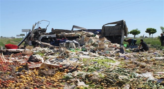 Şanlıurfa'nın Suruç ilçesinde sebze yüklü tırın devrilmesi sonucu tır şoförü yaraland