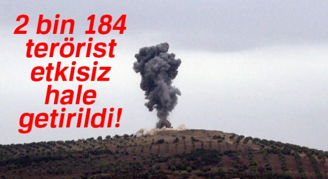 Türk Silahlı Kuvvetlerince, Zeytin Dalı Harekatı'nın başlangıcından bu yana 2 bin 184 teröristin etkisiz hale getirildiği bildirildi.