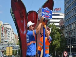Büyükşehir Belediye Meclisi’nin ağustos ayı görüşmelerinde alınan kararlar doğrultusunda Fen İşleri Dairesi Başkanlığı Numarataj Şubesi ekipleri, Genelkurmay Kavşağı ve İrfan Baştuğ Caddesi’ne yeni isimlerin yer aldığı tabelaları taktı.