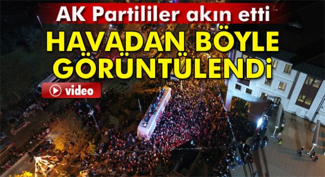 AK Parti il binası önünde zaferi kutlayan coşkulu kalabalık havadan drone ile görüntülendi. Alana akın eden binlerce vatandaş ellerinde Türk Bayrakları ve Cumhurbaşkanı Recep Tayyip Erdoğan’ın posterleriyle seçim sonucunu kutladı. Kimi vatandaşlar da attıklarısloganlarla birlikte meşaleler yakarak alandaki kutlamalara destek verirken alandaki kutlamalar drone ile havadan görüntülendi.