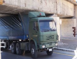 ANKARA / Samsun yolu istikametinde ilerleyen askeri araç, Mamak Caddesi üzerindeki yüksekliği 3 metre olan tren yolu alt geçidinden geçmeye çalışırken sıkıştı. Uzun süren kurtarma çalışmaları sonuç vermeyince direksiyona geçen sürücü, TIR'ı geri manevra ile bulunduğu yerden çıkardı. TIR'da küçük çaplı maddi hasar oluştu.ANKARA /