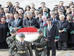 Ankara Barosu Başkanı Metin Feyzioğlu başkanlığındaki baro yöneticileri, cübbelerini giyerek tören alanında toplandı. Atatürk’ün mozolesine çelenk konulmasının ardından, Misak-ı Milli Kulesi’ne geçildi. Baro Başkanı Feyzioğlu, burada Anıtkabir Özel Defteri’ni imzaladı.