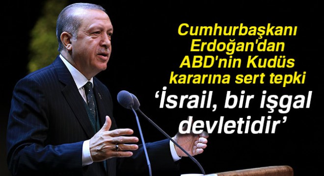 ABD Başkanı Trump'ın Kudüs'ü İsrail'in başkenti olarak tanımasına sert tepki gösteren Cumhurbaşkanı Erdoğan, "ABD Başkanı Trump'ın yaptığı talihsiz açıklama. Bu ne uluslararası hukuka, ne vicdanla, ne adaletle ne de bölgenin gerçekleriyle asla bağdaşmıyor. ABD üyesi olduğu BMGK'ye en büyük darbeyi vurmuştur. Tarih dünde kalırsa yazık, tarihi geleceğe taşımak çok önemli. ABD bu kararıyla kendi altında imzası olan BMGK'nin 478 sayılı kararını yok saymıştır. Böyle bir şey olabilir mi? Altında imzan var. Sen bu imzayı inkar ediyorsun. Güvenlik Konseyinin daimi üyelerinin dahi dikkate almadığı, itibar etmediği bir BM'nin diğer ülkeler nezdinde itibarı ve inandırıcılığı olamaz. Hiç kimse hukukun üstünde değildir. Hiçbir ülke pazusuna güvenerek uluslararası hukuku yok sayamaz. Hele hele milyarca insanın kaderini etkileyecek böyle hassas meselede hoyratça davranamaz" dedi.