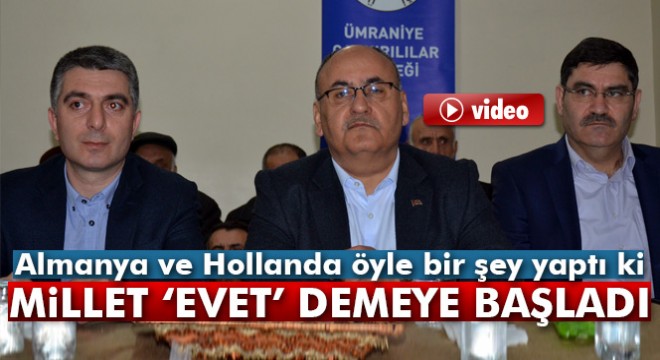 Aile ve Sosyal Politikalar Bakanı Fatma Betül Sayan Kaya’ya Hollanda yönetimi tarafından sergilenen çirkin tutum ile ilgili konuşan Ümraniye Belediye Başkanı Hasan Can, “Almanya ve Hollanda öyle bir şey yaptı ki bizim anlatmamıza gerek kalmadan milletin hepsi 'evet' demeye başladı” dedi.