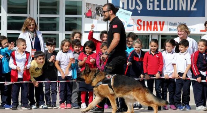 Emniyet Genel Müdürlüğü Köpek Eğitim Merkezi'ne (KEM) bağlı eğitimli köpeklerin yaptıkları gösteri, öğrencilerin yoğun ilgisini çekti.