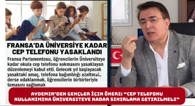 Fransa’da kabul edilen düzenlemenin öğrencilere üniversiteye kadar okullara cep telefonu sokmayı yasakladığını hatırlatan Aydemir, bu kararı yerinde bir adım olarak nitelendirdi. Türkiye’de de benzer bir düzenlemenin hayata geçirilmesinin önemli olduğunu belirten Aydemir, “Cep telefonları, gençlerimizi hem derslere odaklanmaktan alıkoyuyor hem de sosyal ilişkilerini olumsuz etkiliyor. Bugün öğrenciler, akranlarıyla konuşmak yerine saatlerce ekranlara bakıyor. Bu durum, toplum olarak gençlerimize borçlu olduğumuz eğitim ve sosyal gelişim sorumluluğunu yerine getiremediğimiz anlamına geliyor” dedi.