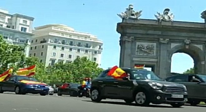 İspanya'nın üçüncü büyük partisi aşırı sağcı Vox partisinin çağrısıyla caddeleri dolduran göstericiler klakson çalarak hükümet aleyhindeki gösterilerini Madrid, Barselona, Lograno, Murcia caddelerinde sürdürüyor.