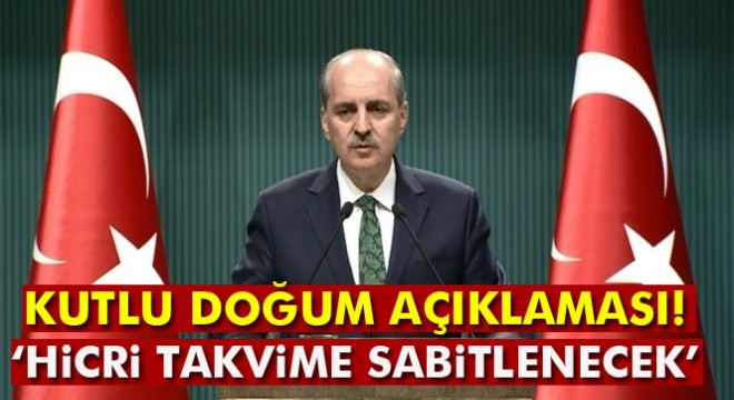Başbakan Yardımcısı Numan Kurtulmuş, Kutlu Doğum Haftası’nın hicri takvime sabitleneceğini, konuyla ilgili Diyanet’in önümüzdeki günlerde toplanacağını belirtti.
