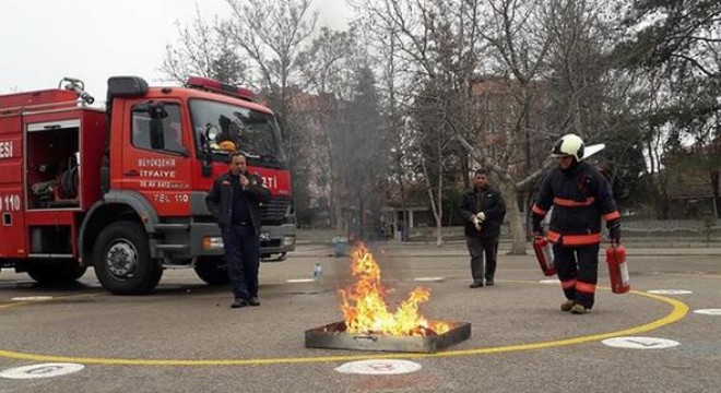 Ekipler yangın söndürme, yangında yapılması gerekenler, alınması gereken tedbirler ile yangın söndürme ve yangına müdahale şekilleri konusunda uygulamalı bilgi verdi.