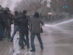 Polis müdahalesi ile bir anda savaş alanına dönen ve hava sıcaklığının en fazla 4 derece olduğu bölgede polisle öğrenciler arasındaki arbede yaşandı.