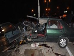 Otobüsün çarptığı araç ikiye bölündü