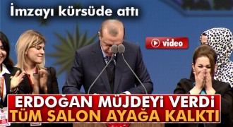 Erdoğan müjdeyi verdi, imzayı kürsüde attı