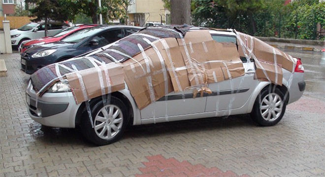 İstanbul’da yapılan dolu yağışı uyarısının ardından araçlarını korumak isteyen vatandaşlar ilginç önlemlere başvurdu.